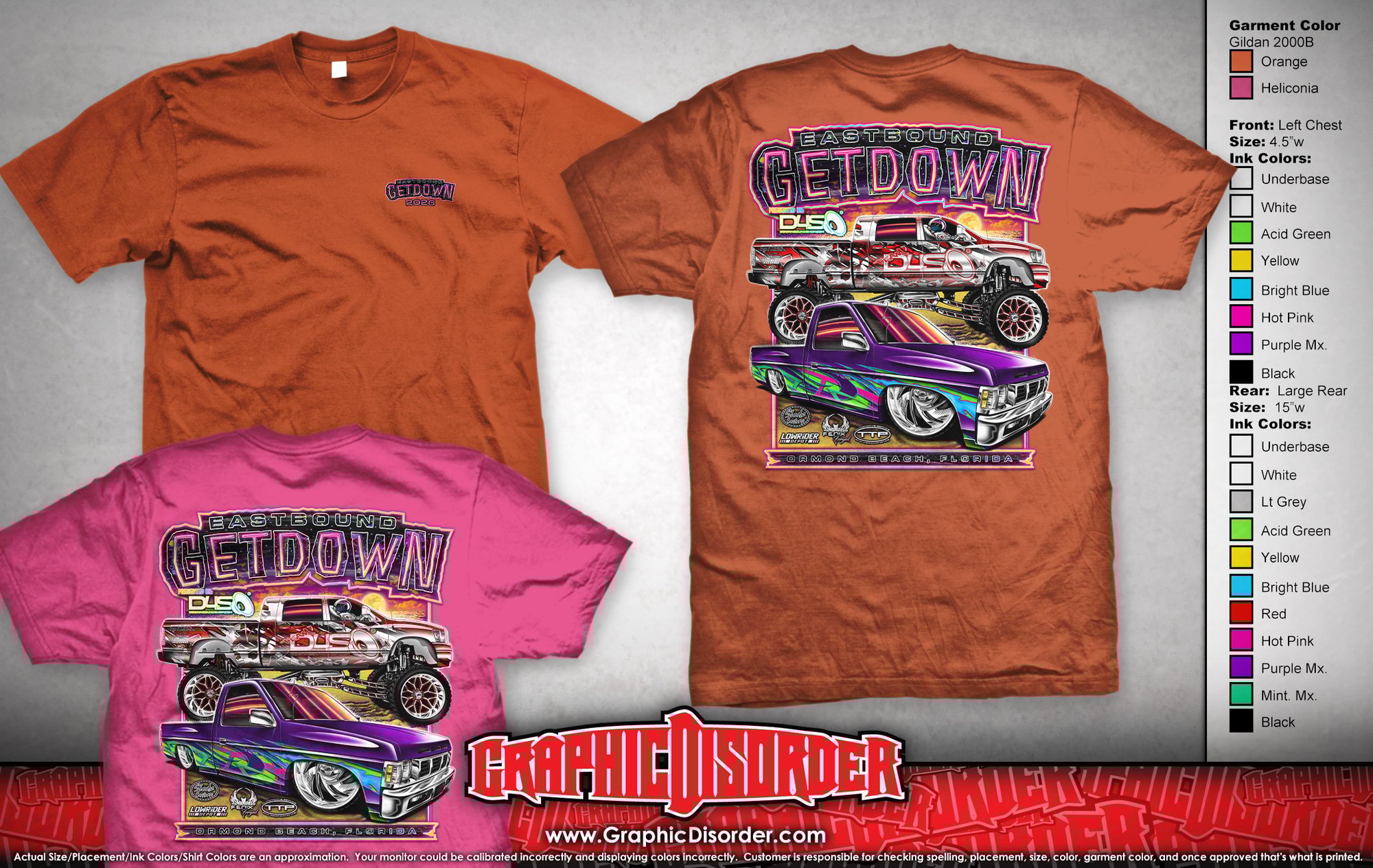 2026 EBGD Nighttime Artwork Show Shirt by Graphic Disorder!! Featuring Robert Warring's AKA Dirty Rob 2008 Dodge Ram 2500 Mega Cab & Matthew Diaz's 1995 Nissan Hardbody Pickup**YOUTH SIZES are only available for PRE-SALE!!****Tall Sizes available only in Black****Super Soft Available in Black**