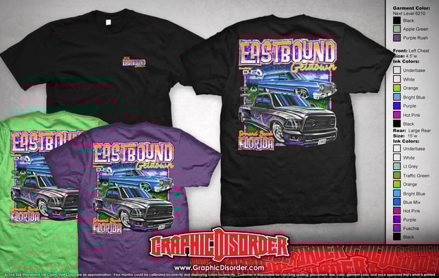 Eastbound Getdown 2026 Daytime Show Shirt featuring artwork done by Graphic Disorder! Featuring: Russell & Kimberly Smith's 1964 Chevy Impala & Derek Belt's 2014 Dodge Dually 3500! Gildan Adult Softstyle® T-Shirt Gildan Adult Ultra Cotton® Tall T-Shirt Gildan Adult 50/50 T-Shirt This is a pre-sale starting October 4th running through October 23rd. PICKUPATEBGD26 for free shipping if picking up at EBGD in Jan. 2026 or pay shipping to have order shipped to your address when orders are received sometime in December 2025.
