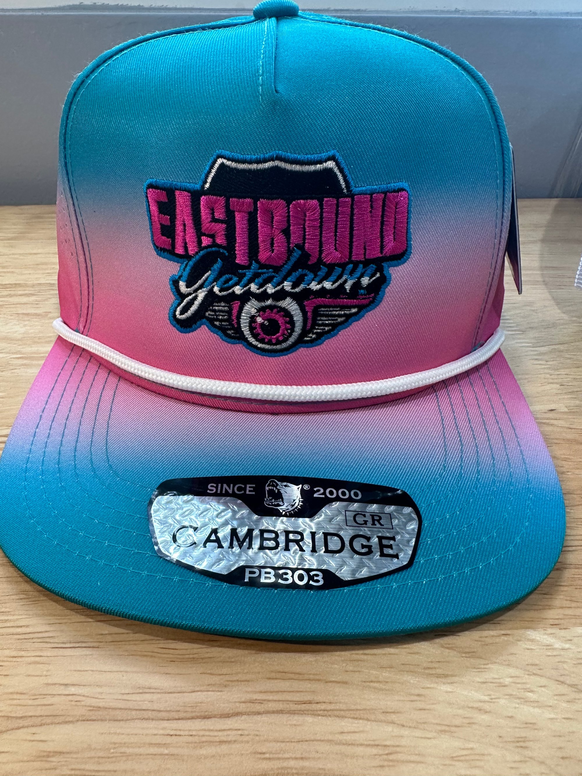 Cambridge Flat Bill Snapback Five Panel Rope Aqua/Pink with Special Edition 2026 Eyeball Embroidered Logo Use promo code: PICKUPATEBGD26 for free shipping if picking up at EBGD in Jan. 2026 or pay shipping to have delivery sometime in December. Hat done by Branded Streets.