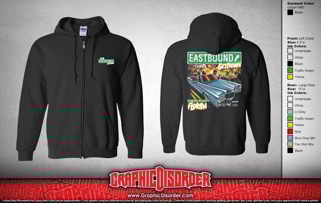 Eastbound Getdown Talls & Smalls Zip Up aka John Lopez & Mike Murray. This is a special edition artwork featuring Kona, Rolex & Zoe which are their beloved dogs!! Get yours before there gone!!!! Zip up's will be Gildan Adult Heavy Blend™ 8 oz., 50/50 Full-Zip Hooded Sweatshirt! Zip Up's only go to 3XL!